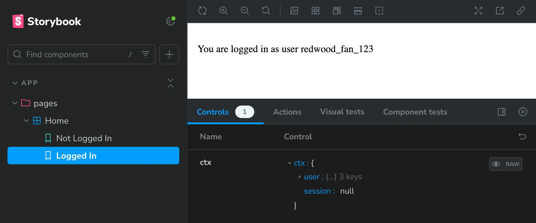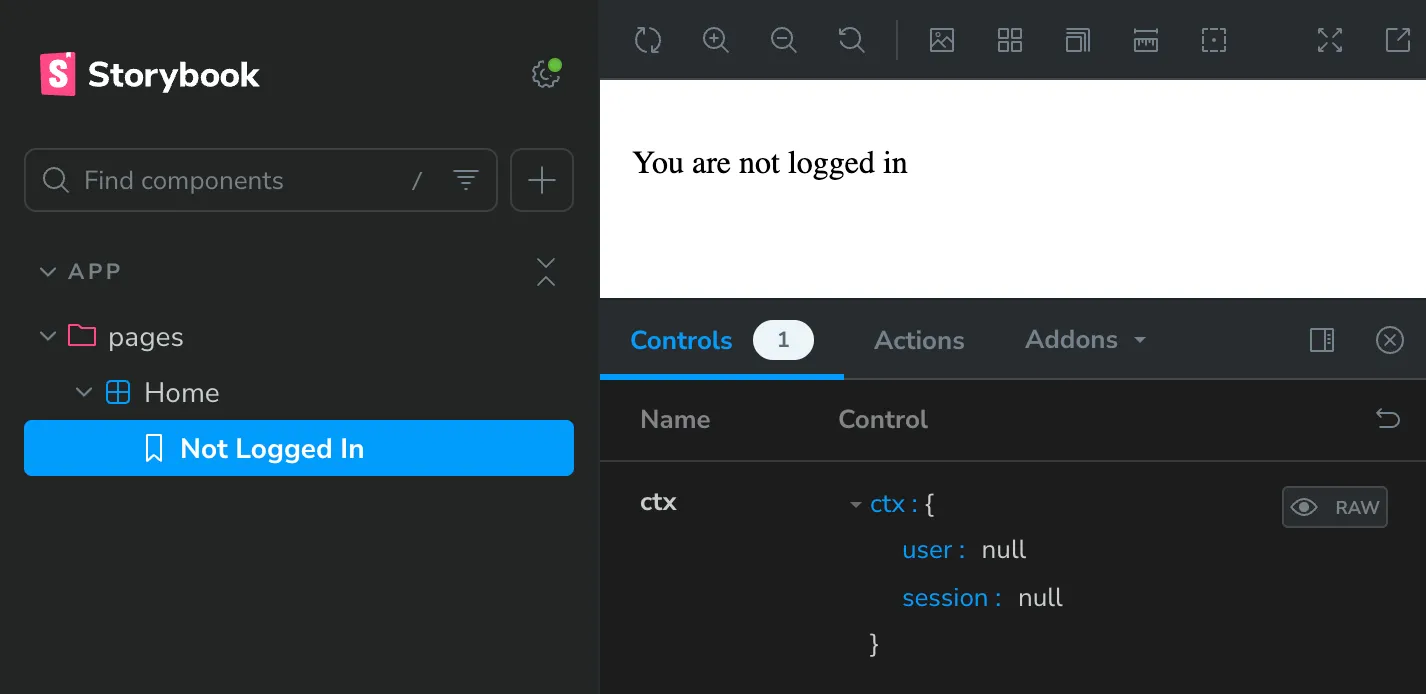 3. Great! What if we want to mock the logged in user? We can do that by adding a new story, this time passing in a user object to the ctx prop: