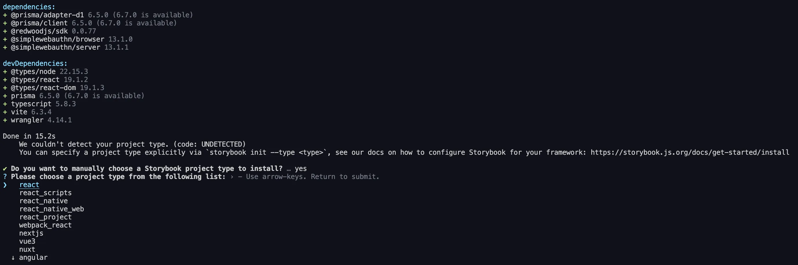 3. It’ll say it can’t detect the framework. Select React — it’ll automatically detect Vite: